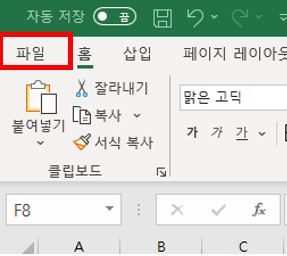 1. 엑셀의 좌측 상단의 "파일" 클릭